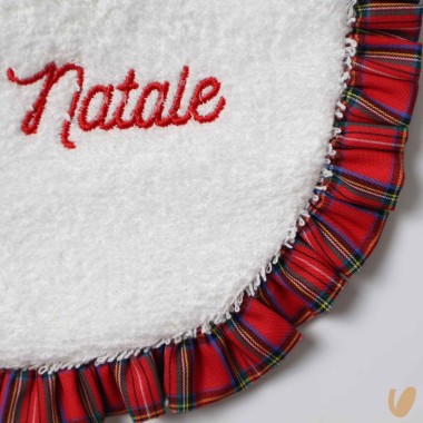 Round bavetta with tartan fantasy hem and Merry Christmas embroidery