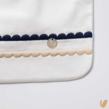 Square cotton bavette with blue and beige embroidery