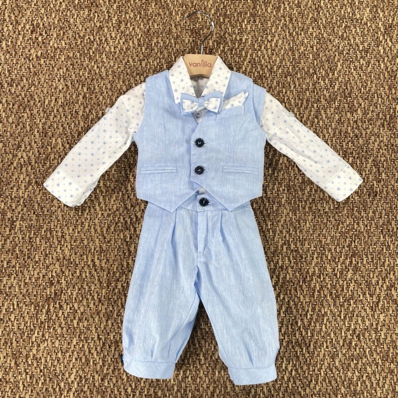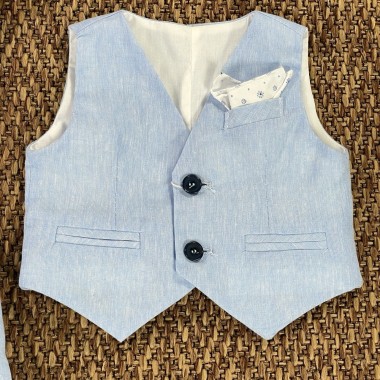 Complete composed of shirt vest pantalone and bow tie in mixed linen (56%lino 44%cotone) the Italian company Bufi.