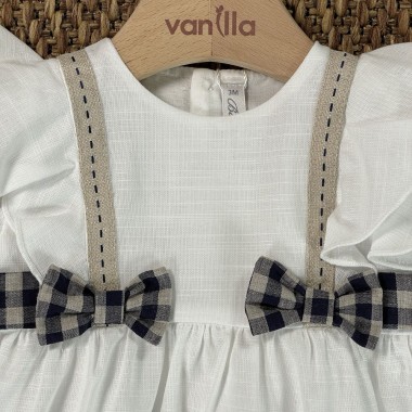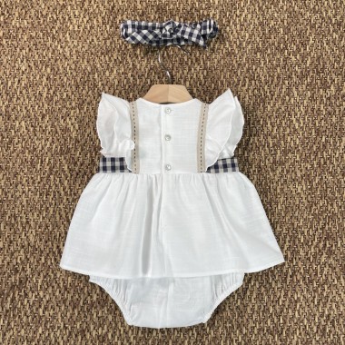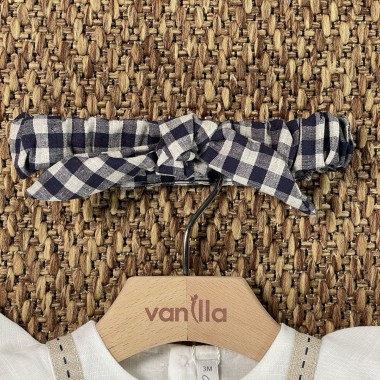 Flax texture pad composed of double layer with upper dress , with beige and blue vichy details