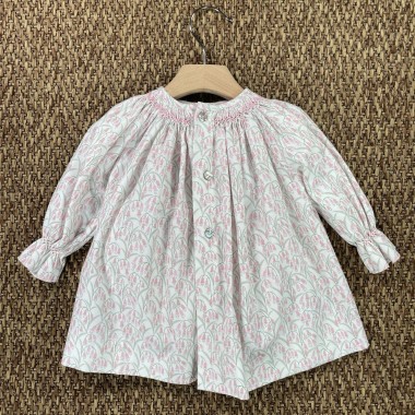 smock stitch neck with handmade embroidery of flowers