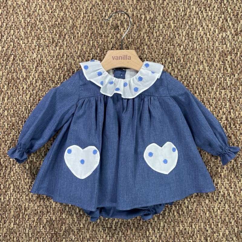 Mini dress cut empire pockets and collar with polka dots, matching ass