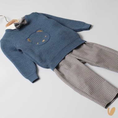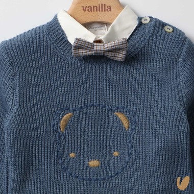 Wool blend sweater with bear embroidery (50%lana 50% acrylic)