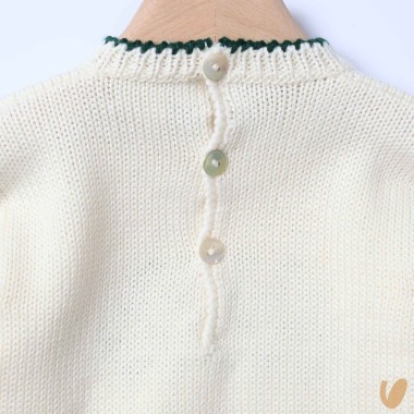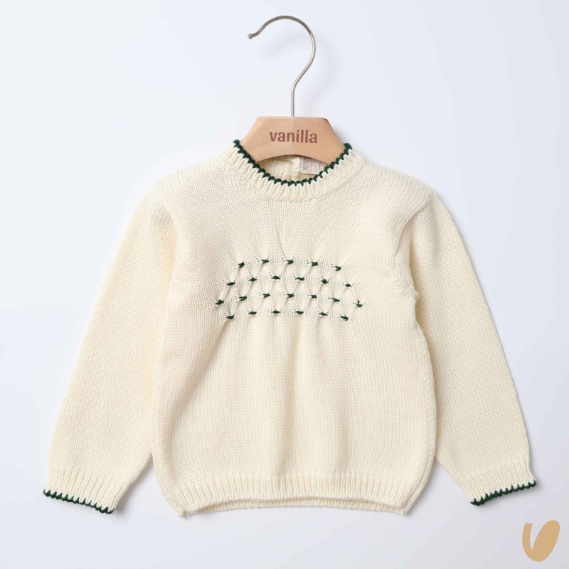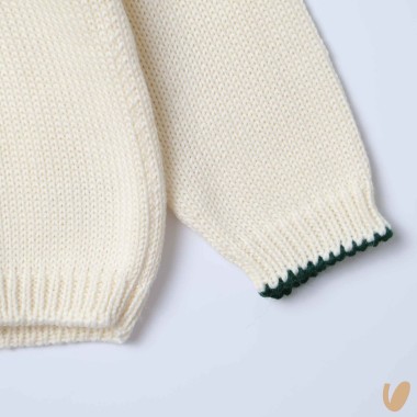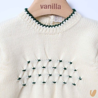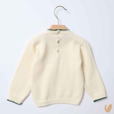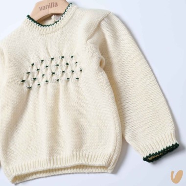 Mixed wool sweater with embroidery handmade of honeycomb and crochet hem