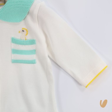 proposes fine knitwear, which stands out for the extreme attention in the choice of fibers and characterized by the yellow thread, present in every creation to symbolize the bond between people, a ray of sun that unites.