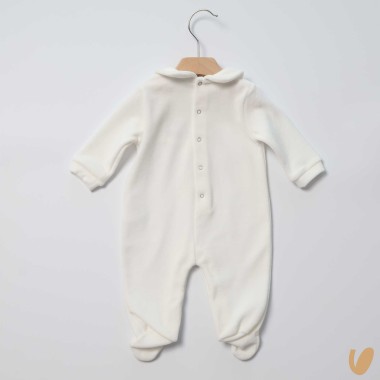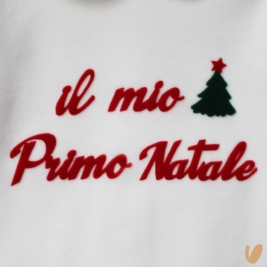 This jet Cotton chenille (80%), soft and warm, is designed to celebrate first Christmas with elegance. The inscription "My first Christmas", made in contrasting soft application, enriches the head with an exclusive and refined detail. The clean design is completed by the chenille collar and a comfortable fit, suitable for children.