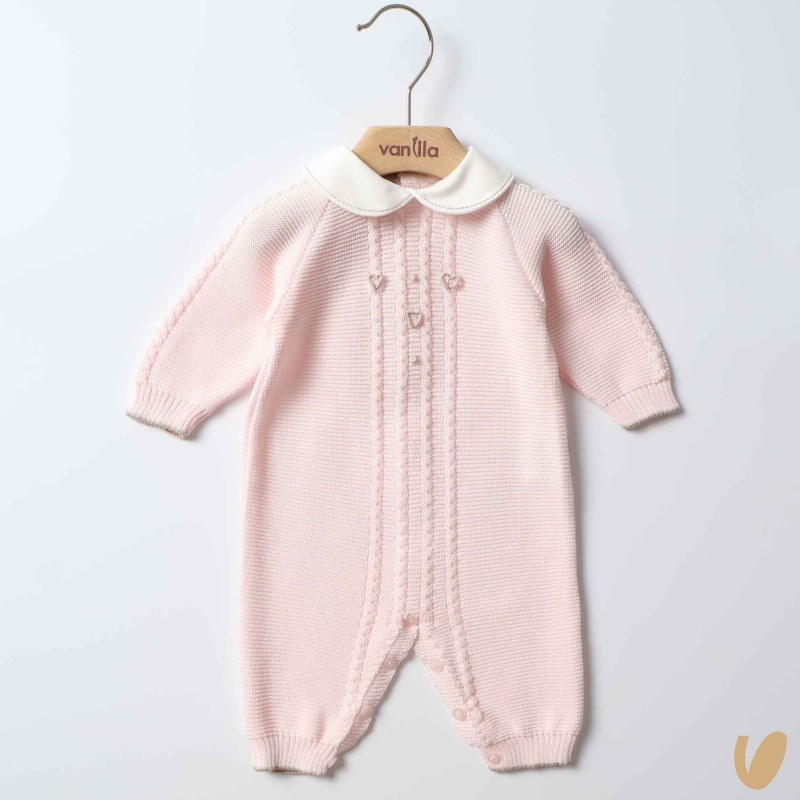 Knitting with braids on the front and on the lacks, collar in piqué with contrasting profile, central hand-reliable embroidery of 3 hearts