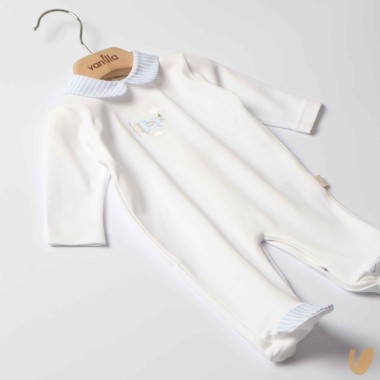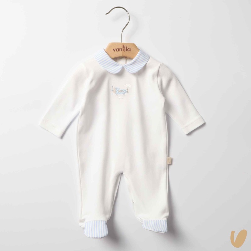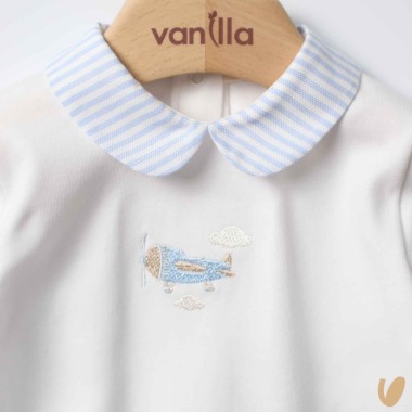 Cotton jersey jersey collar and striped feet, embroidered airplane