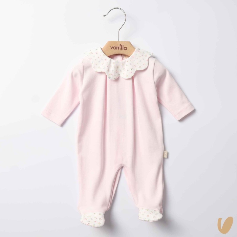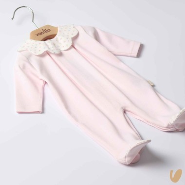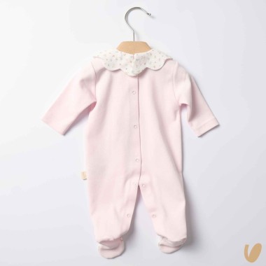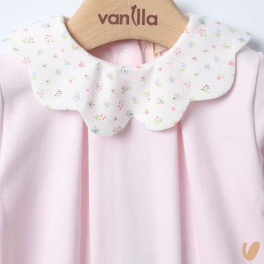 Jersey jersey with scalloped collar and feet in flowers cotton piqué