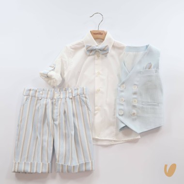 Elegant finish 4 pieces composed of trousers, shirt, bow tie and vest