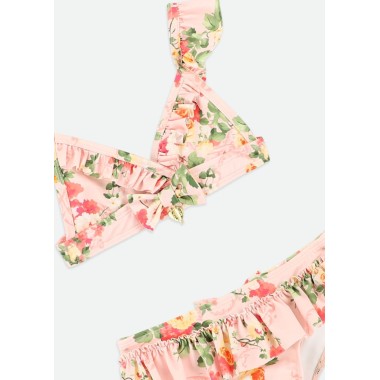 two-piece costume, triangle bra, bow and heart-shaped tag