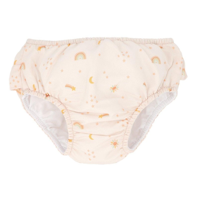 Comfortable and elastic for the sea and pool, retains solid fugues and for a more limited period of time, even liquid ones (which are not absorbed as in a cellulose diaper but only retained).