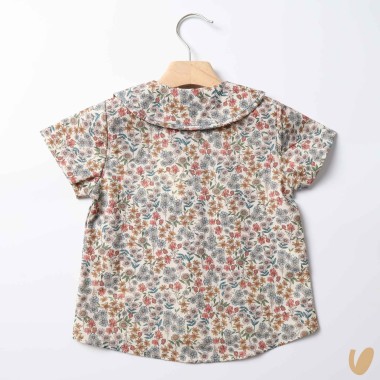 Bonton shirt Vintage flowers print with round collar and wooden buttons