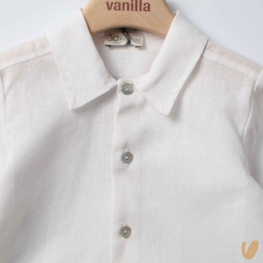 100% pure linen shirt with mother-of-pearl buttons and classic neck