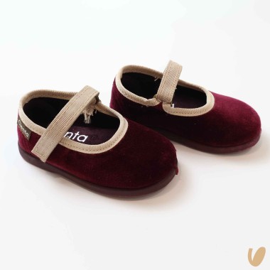 Soft velvet ballerina with rubber sole strap with Velcro closure