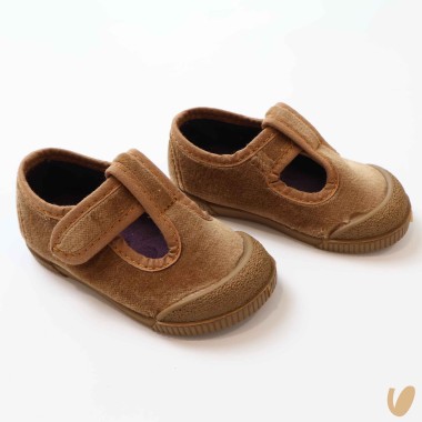 Unisex eyelet shoes in soft velvet with barefoot rubber sole