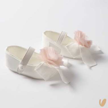 Fabric dancers and eco-leather strap with button application of linen bow and organza flower