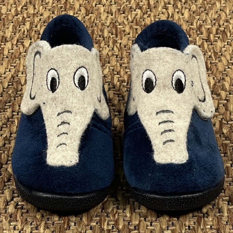 Velour slippers with soft rubber sole, Velcro closure on elephant