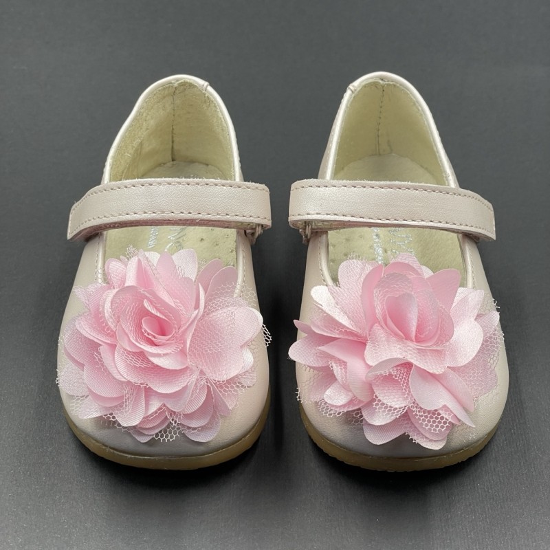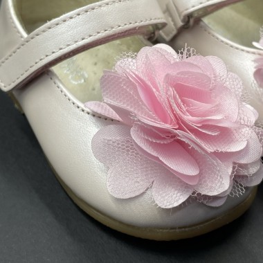 Ballerina pearl with application of multi petal flower in satin tulle and chiffon strap with velcro plantar anatomical sole anti slip
