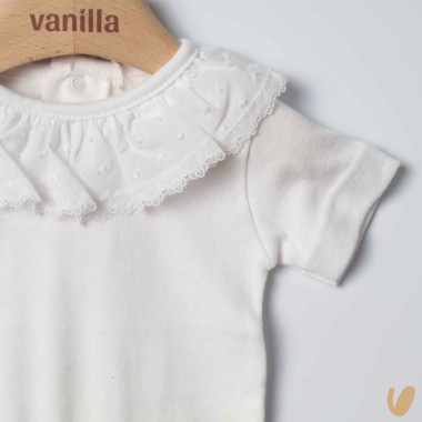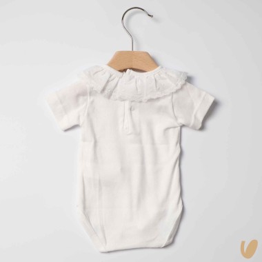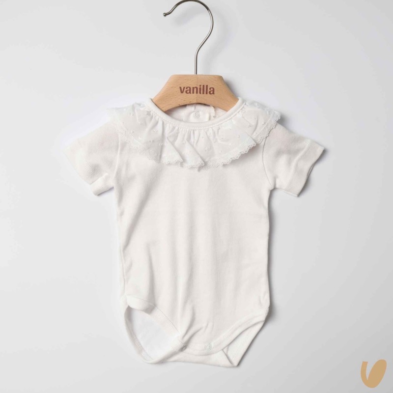 Short sleeve body with Plumetis collar and lace