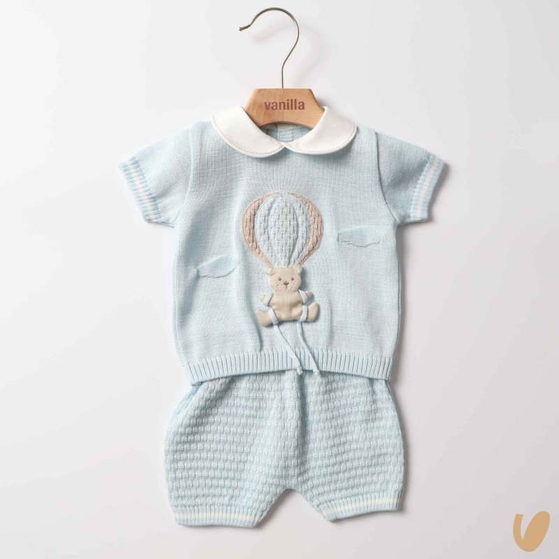 Short sleeve jersey with hot air balloon inlay, embroidery and bear application