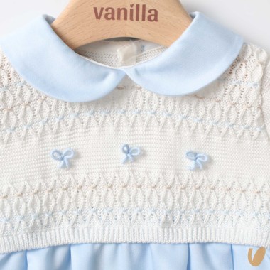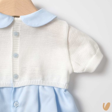 Collar and lower part in blue satin cotton