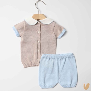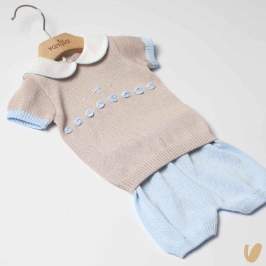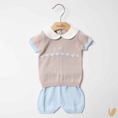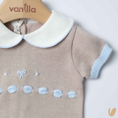 Composed of knit and short embellished with small hand embroidery, love knots and polka dots.