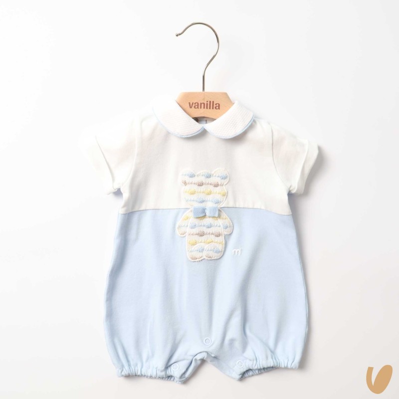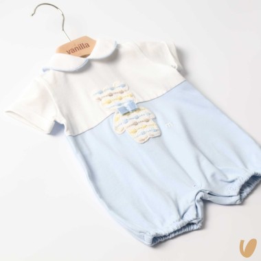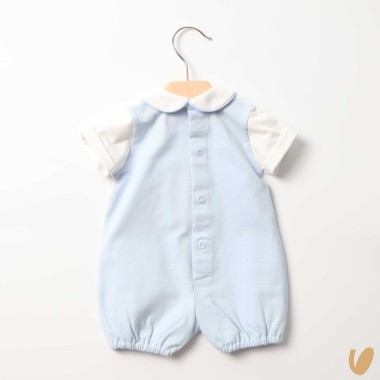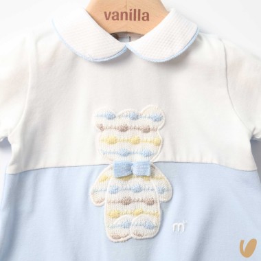 Romper in cotton jersey with teddy bear in cotton and collar in Piquè
