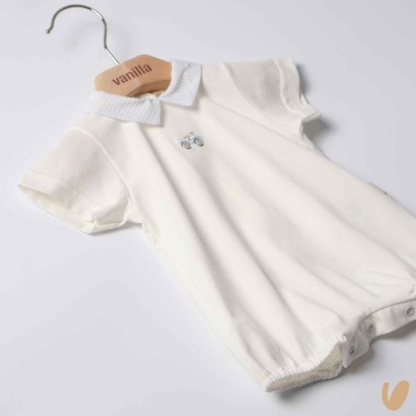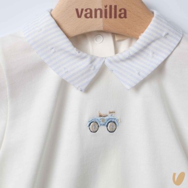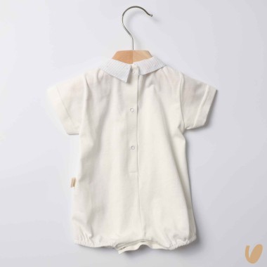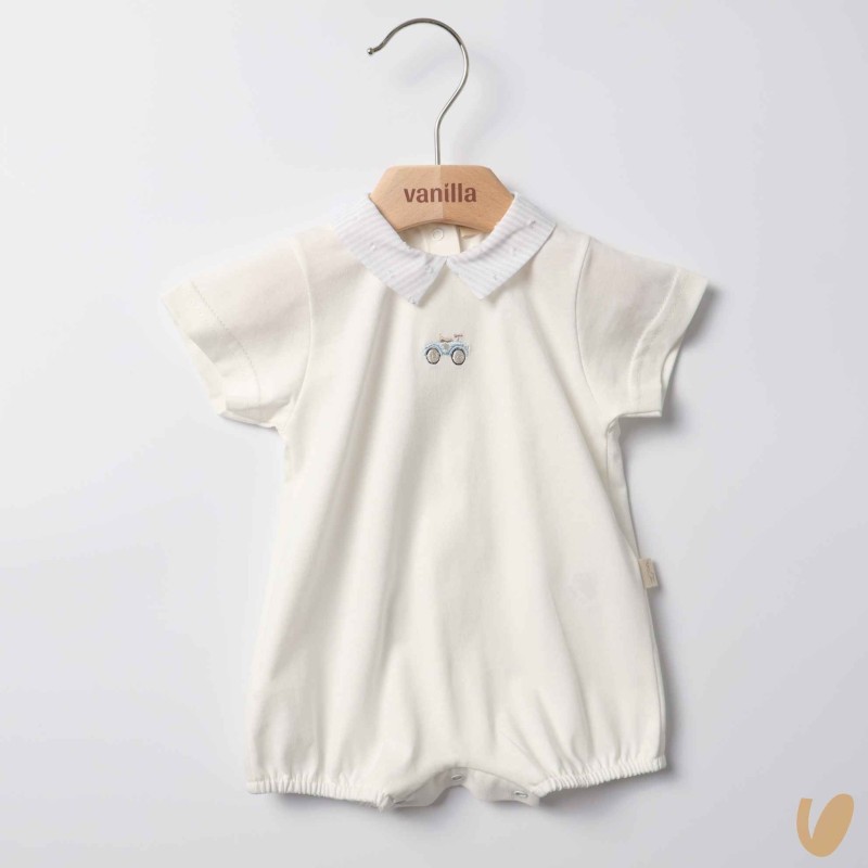 Romper in jersey with lined lines and car embroidery