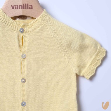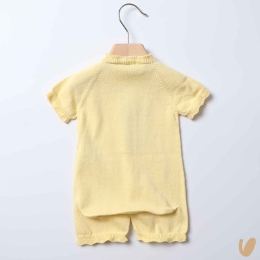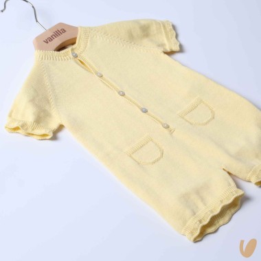 Romper in organic cotton thread with inlaid pockets and scalloped edges