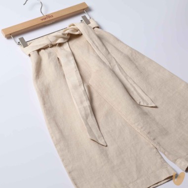 100% pure linen pants cropped model with fold and removable belt