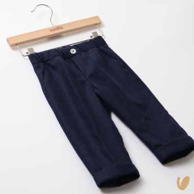 classic cut with thread pockets, mother-of-pearl button and elastic waist